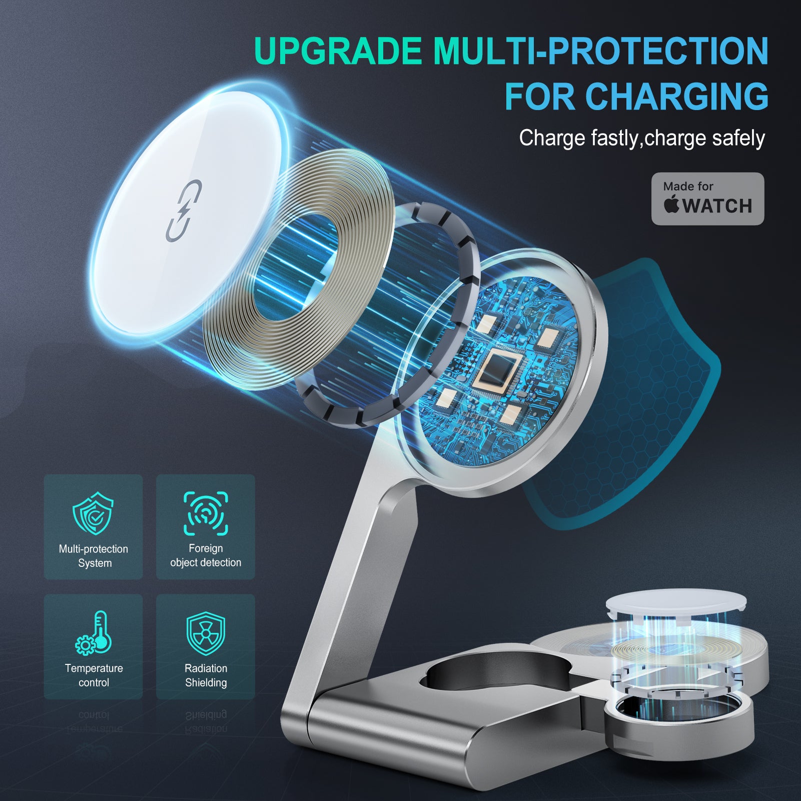 - 【Excellent Compatibility】 Compatible with iPhone 12-16 series(Only supports magnetic or magnetic casing), Apple Watch S2-10 series/SE/Ultra series, AirPods 2-4 series (note: AirPods support Mag Safe safes)